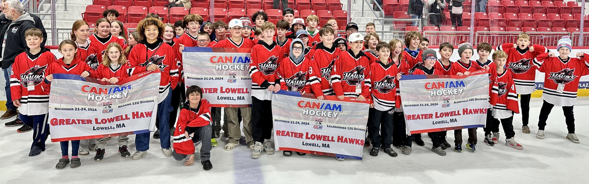 Greater Lowell Hawks is a town-based hockey program covering the Greater Lowell area (Lowell, Dracut, Tyngsborough). We offer programs starting from Learn to Skate, up to U18 travel teams and strive to provide a fun and competitive learning environment for all our members. We practice out of the Janas Rink in Lowell, MA.